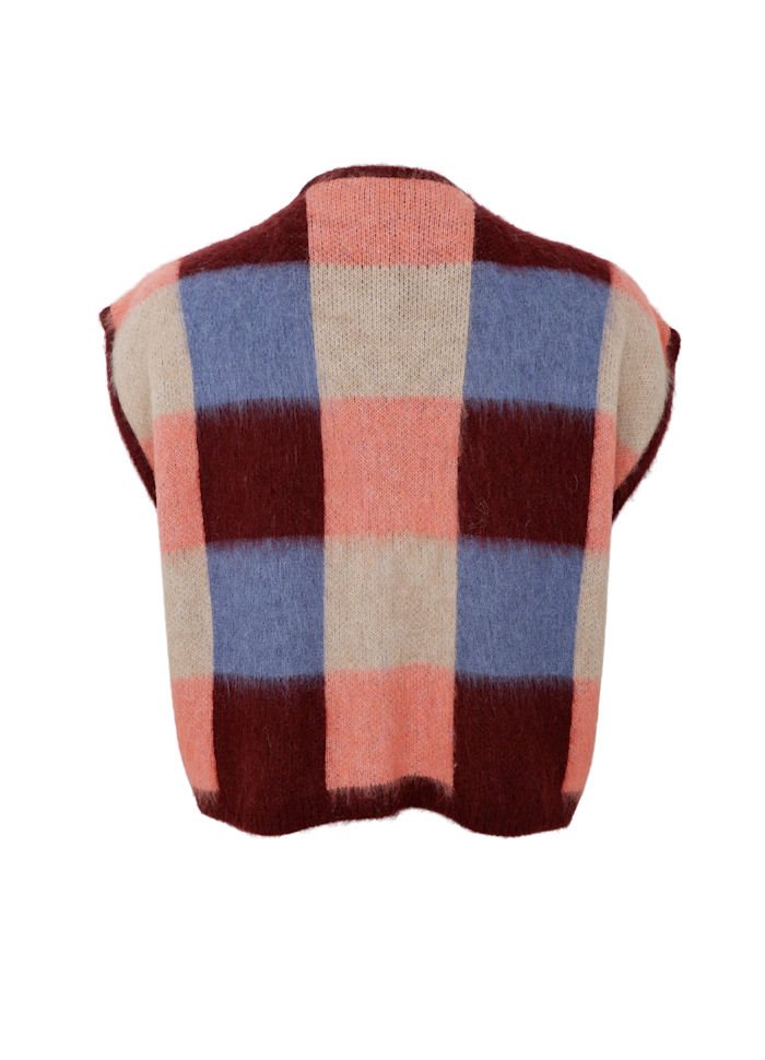 BLACK COLOUR CHESS KNIT VEST BERRY MIX - 1213