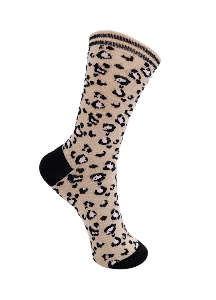 Lækre bløde bomuldssokker med glitter og leoprint. Hold dine føder varme med de dejlige og stilfulde sokker fra Black Colour.