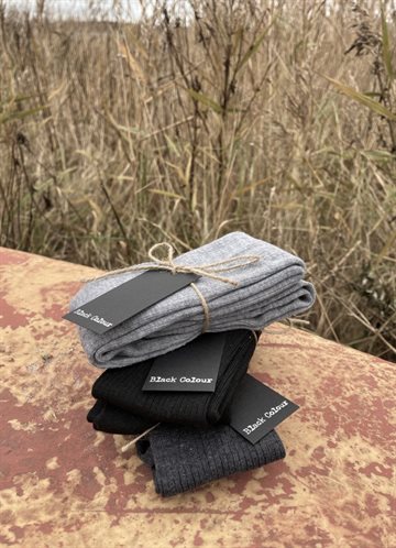 Hold fødderne varme og komfortable med disse lange ribstrikkede sokker i en blød bomuldsblanding. Sokkerne har en klassisk og tidløs stil, der går til knæet, og giver både varme og åndbarhed. Perfekte til efterår, vinter og hyggelige dage derhjemme.