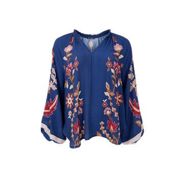 Blusen er fremstillet i en blød og let kvalitet af 85% lyocell og 15% polyester, hvilket sikrer både komfort og holdbarhed. Designet har længere bagstykke end forstykke, som giver en flatterende silhuet.