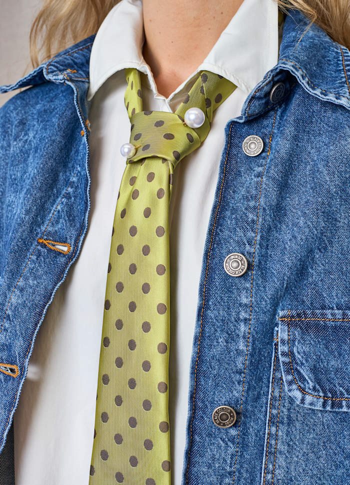 Brug den i en blazer, skjorte, kjole eller som en dekorativ detalje på din taske – mulighederne er mange, og den er nem at style på din egen måde.