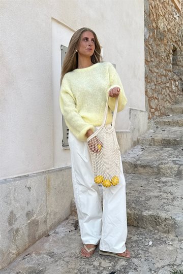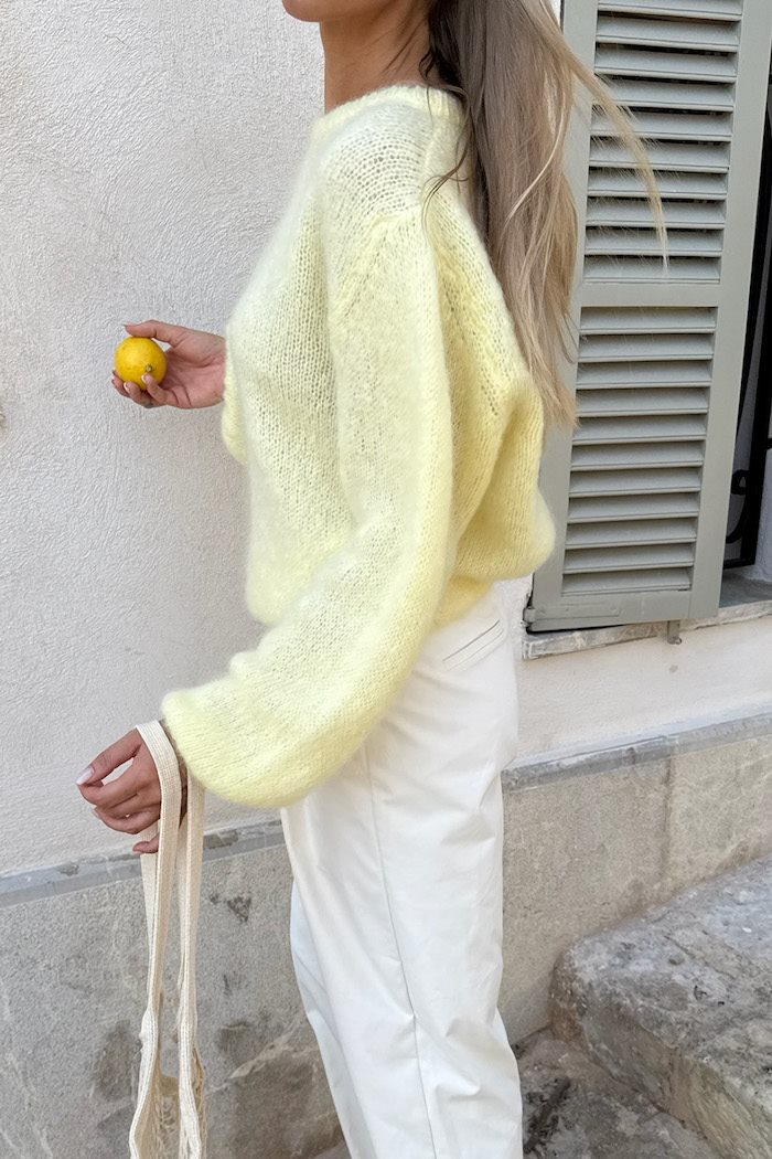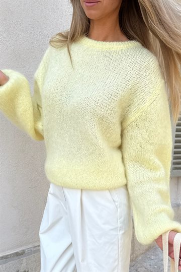 Opgrader din strikgarderobe med IdaIC Pullover i en livlig gul farve. Denne fuzzy mohair-pullover er designet med lange ærmer, der afsluttes med smalle ribmanchetter for et let puffet udtryk. Rund hals, ribbet kant og en raffineret finish giver et elegant og moderne look, som fungerer til både jeans og nederdele.