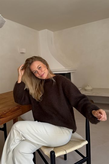 Tilføj tidløs elegance til din garderobe med IdaIC Pullover i Dark Brown. Denne fuzzy mohair-pullover er designet med lange ærmer, der afsluttes med smalle ribmanchetter for et let puffet udtryk. Rund hals, ribkant og en raffineret finish giver strikken et stilfuldt og moderne look, som fungerer perfekt til både bukser og nederdele.