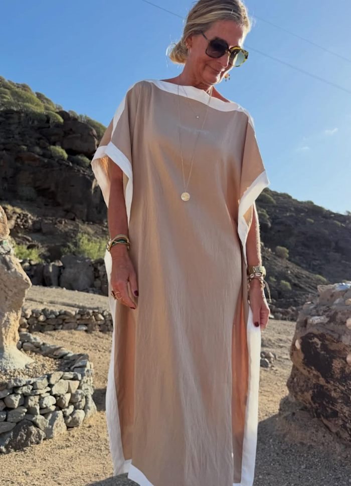 Skab et elegant og afslappet look med Cabana Living Diza kjole i Duna – en smuk kjole med let og luftig komfort.
