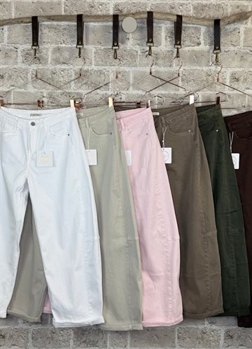 Den bløde bomuldskvalitet med stræk sikrer høj komfort og god bevægelighed, mens den klassiske linning med lommer giver et tidløst look. Bukserne kan nemt styles med både skjorter, strik og lette toppe.