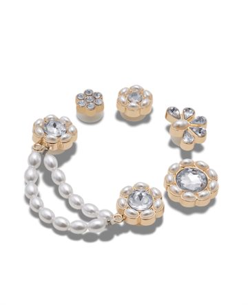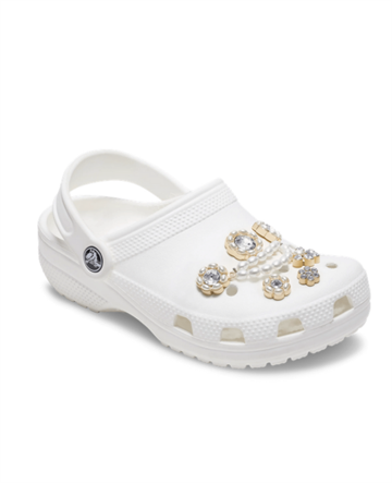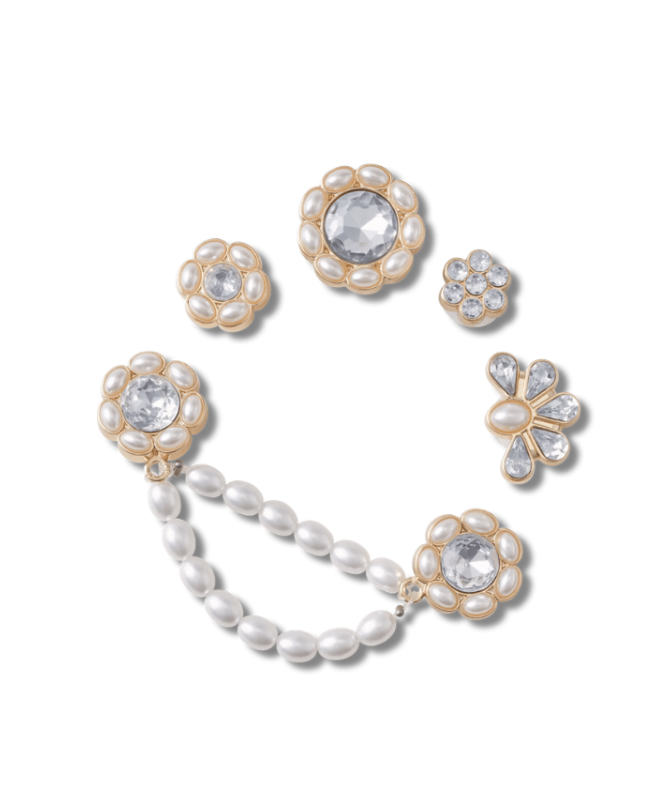 Giv dine Crocs et elegant og personligt udtryk med denne smukke charms-pakke med 5 stk. Charmsene har et feminint design med perler og funklende sten, der tilfører et eksklusivt og dekorativt look til dine sko.