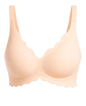 De sømløse cups giver en glat og usynlig finish under tøjet, mens den feminine scallop-kant tilfører et elegant touch.