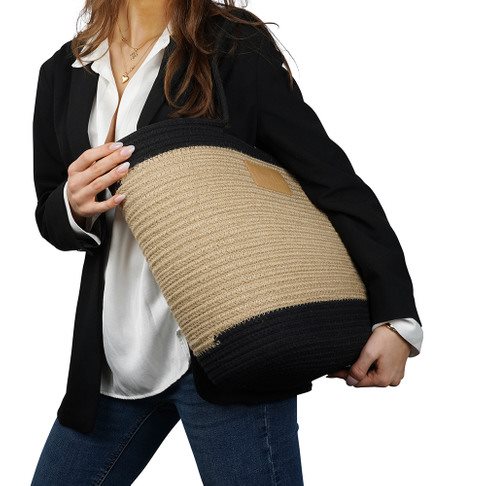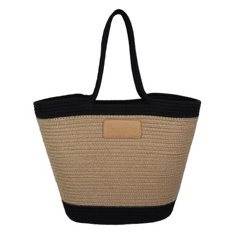 Den klassiske sorte farve giver tasken et stilrent og tidløst udtryk, som gør den nem at kombinere med ethvert sommerlook. Tasken er både praktisk og alsidig, hvilket gør den ideel til både strandture, shopping og weekendudflugter.