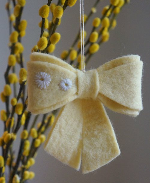 Smuk og dekorativ sløjfe med fine blomsterdetaljer, der pynter elegant i hjemmet. Den håndlavede udførelse giver sløjfen et unikt og charmerende udtryk, som skaber en hyggelig og personlig stemning.