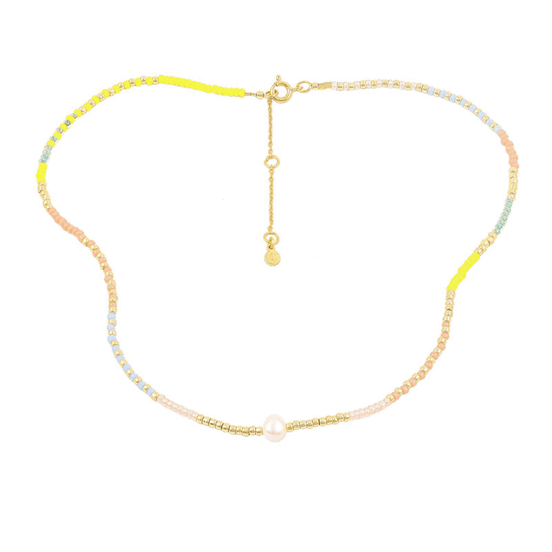 Så smuk halskæde fra Hulquist i sterling sølv forgyldt med 18 karat guld, ferskvandsperler og miyuki perler.
