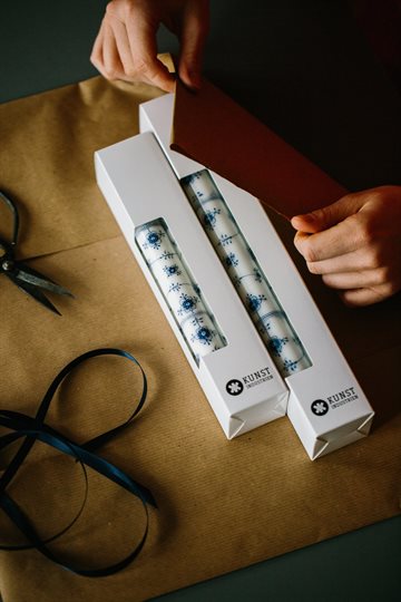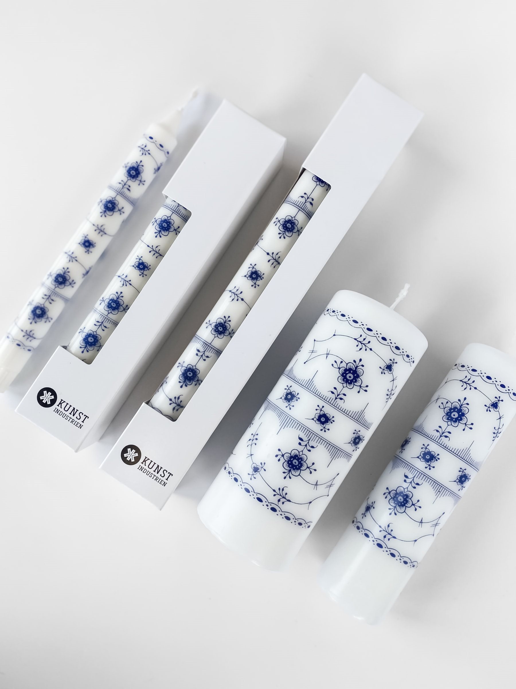 Skab en stemningsfuld og elegant atmosfære med det klassiske stearinlys fra Kunstindustrien. Dette lys er dekoreret med det ikoniske blå royale Copenhagen-mønster, der udstråler tidløs skønhed og eksklusivitet.