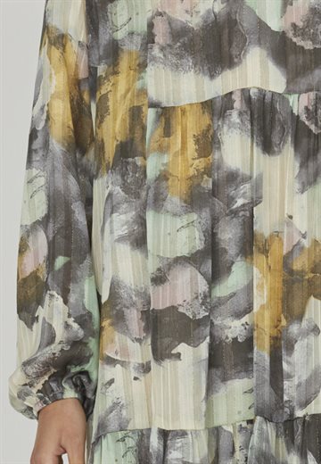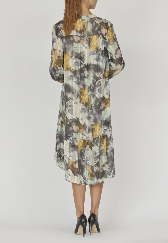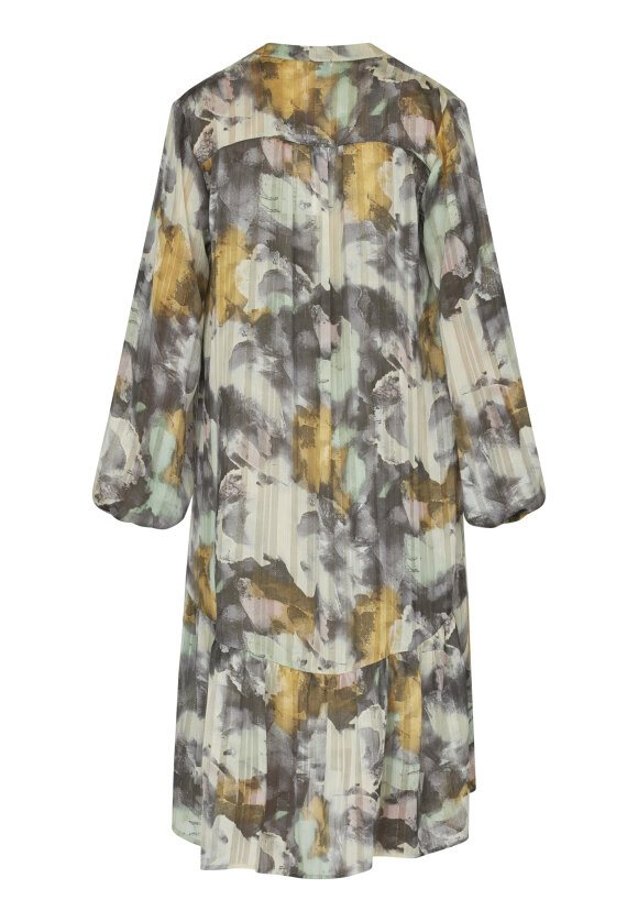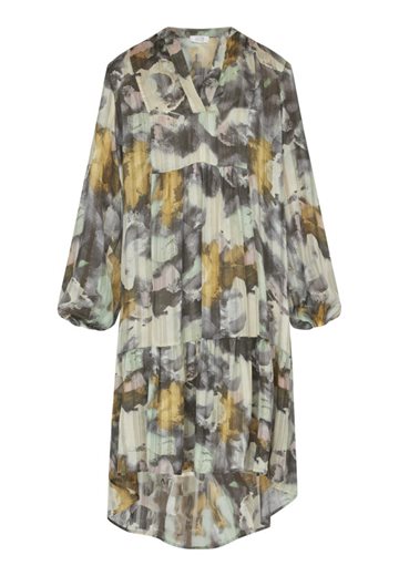 Denne smukke kjole fra Love & Divine har et unikt abstrakt mønster i dæmpede farver og en afslappet pasform. Perfekt til både hverdag og særlige anledninger.
