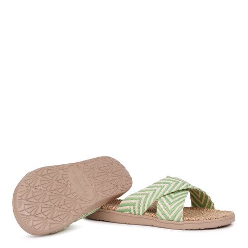 Den friske grønne nuance tilfører et moderne og sommerligt twist, som gør sandalen ideel til både stranddage, ferier og afslappede hverdagslooks. Kombinationen af jute og bast skaber en let og åndbar sandal, der samtidig føles behagelig at have på hele dagen.