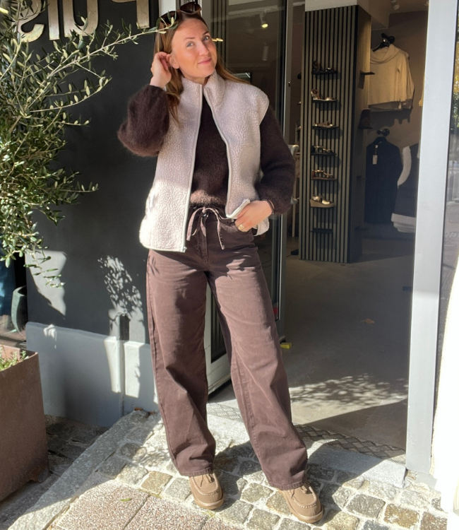 De er fremstillet i 100% bomuld uden stræk, hvilket giver en autentisk denim-fornemmelse og et fast fit, der holder formen. I taljen har de både bindebånd, knap- og lynlåslukning, som giver ekstra detalje og et feminint touch. Perfekte til både hverdagsbrug og styling med en skjorte eller blazer for et mere gennemført look.