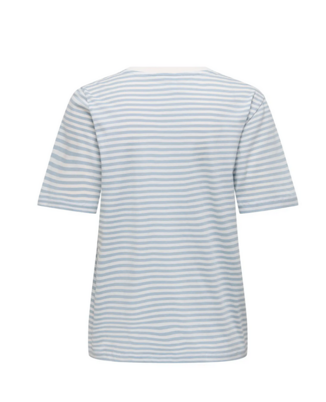 ONLY HAPPY CLOUD DANCER SOFT CHAMBRAY STRIPE S/S EMB TOP - 15370117