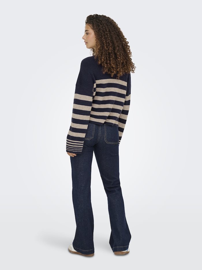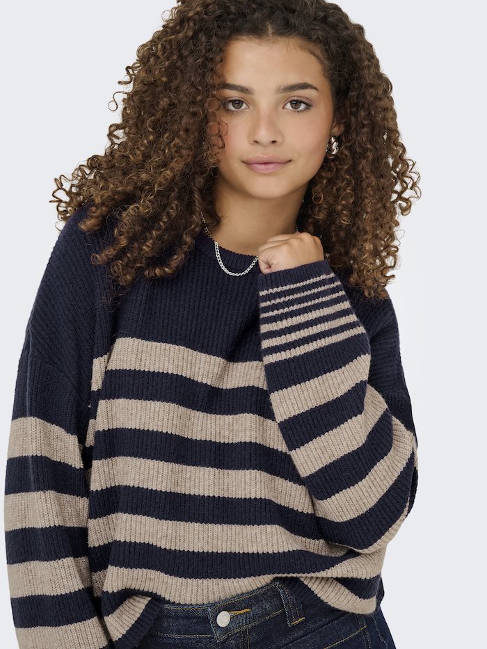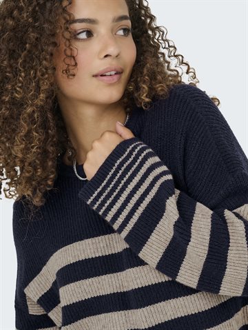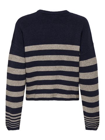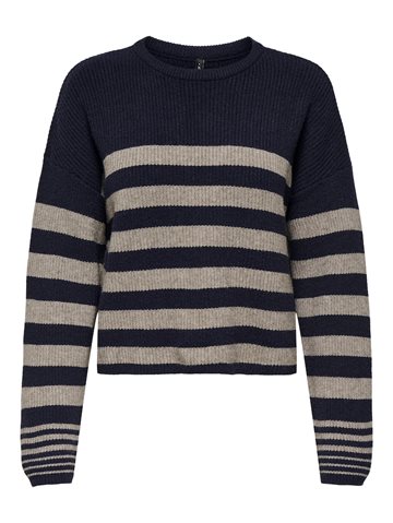 ONLY KATIA LS RIB STRIPE O-NECK CC KNT NIGHT SKY/FUNGI MELANG - 15350688