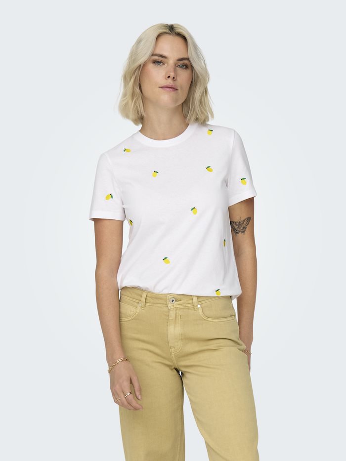 ONLY KETTY BRIGHT WHITE LEMONS LIFE S/S O-NECK TOP - 15288473
