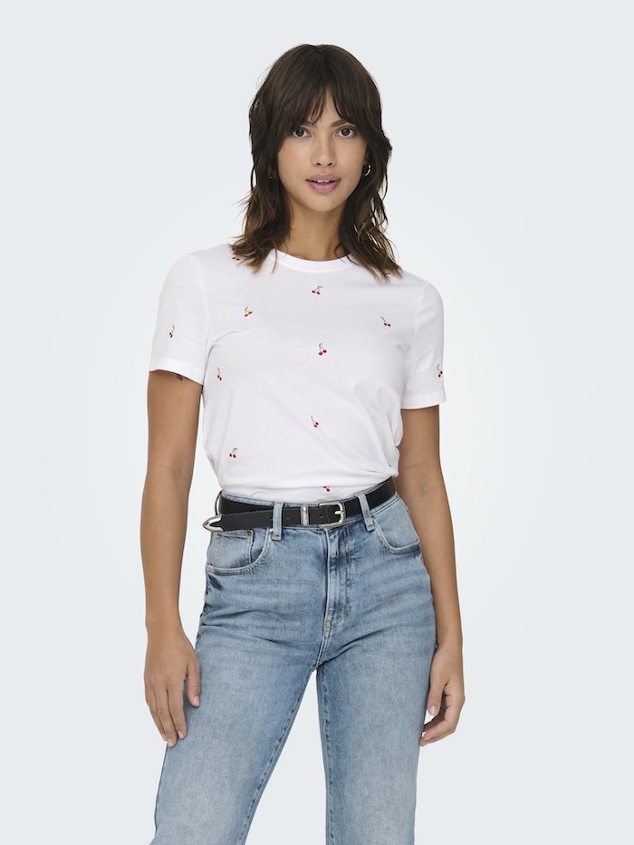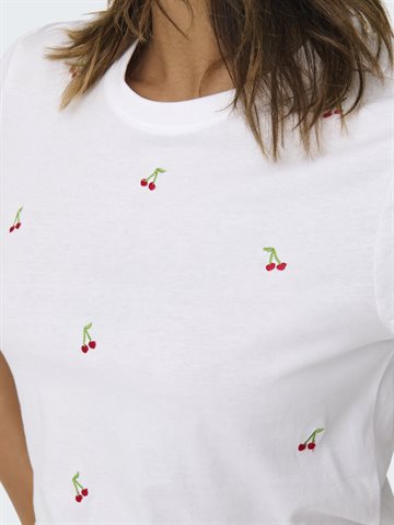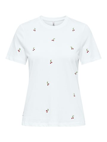 ONLY KETTY BRIGHT WHITE CHERRIES LIFE S/S O-NECK TOP - 15288473