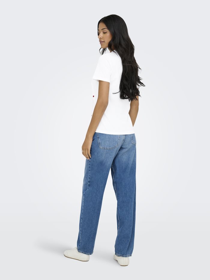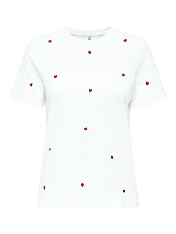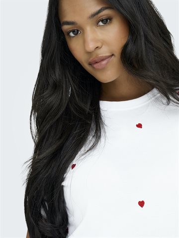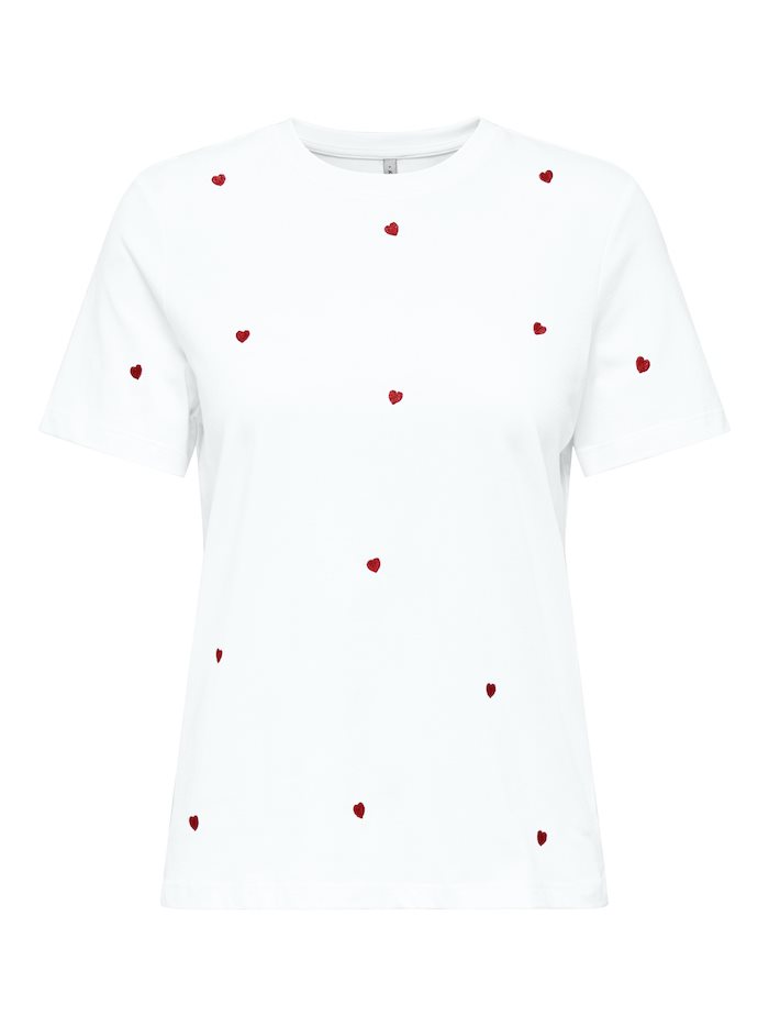 ONLY KETTY BRIGHT WHITE HEART LIFE S/S O-NECK TOP - 15288473