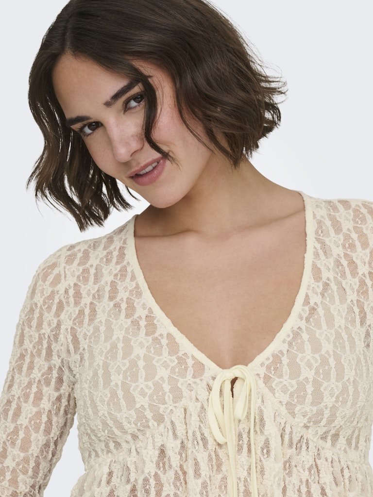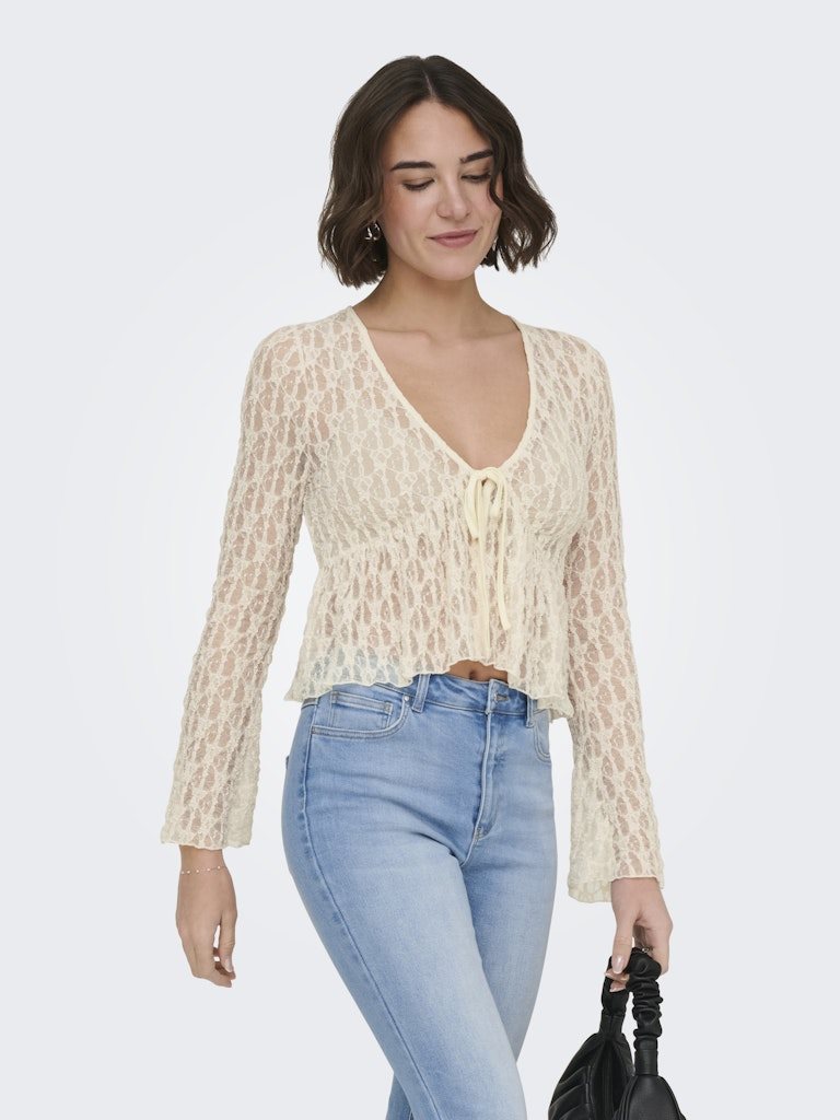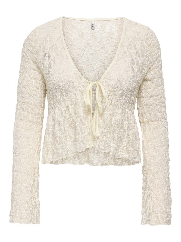 Tilføj et feminint og romantisk touch til dit outfit med ONLY Laya Lace Cardigan i Birch – en let og elegant cardigan i smuk blonde.