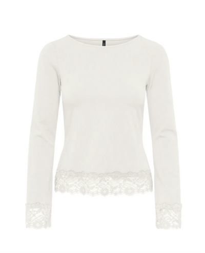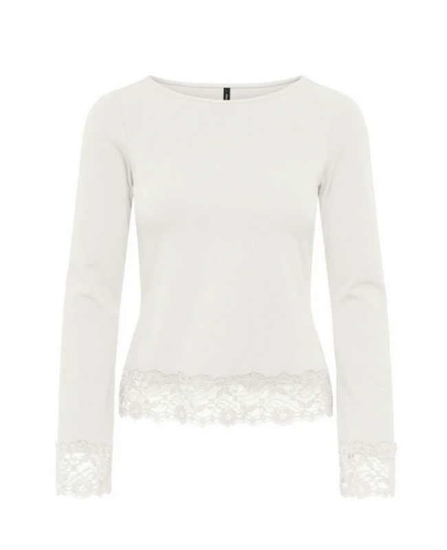 ONLY LIVE LOVE CLOUD DANCER L/S O-NECK LACE TOP - 15385106