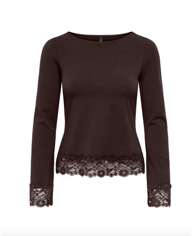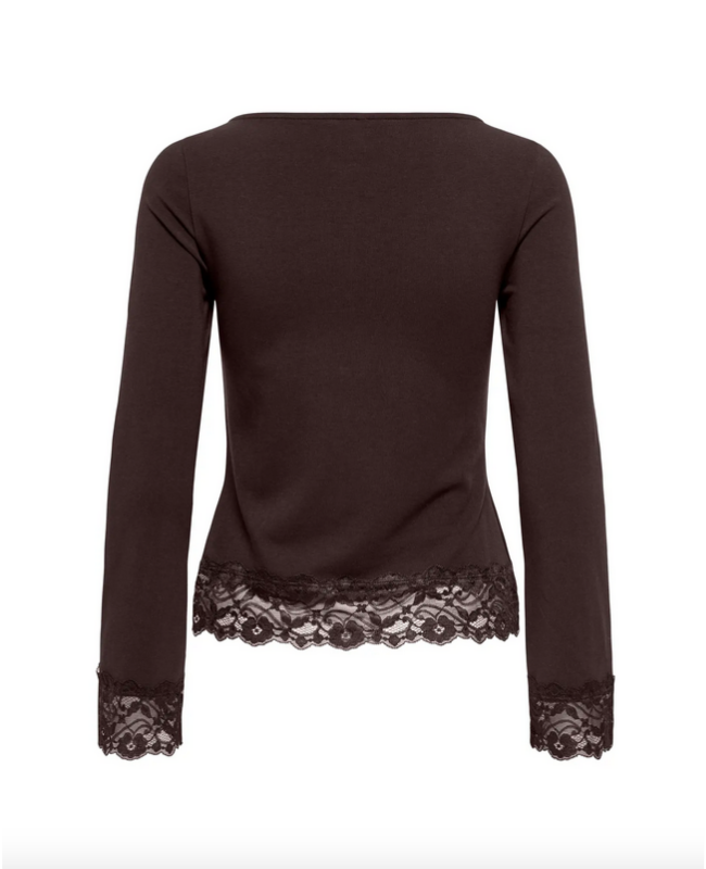 ONLY LIVE LOVE CHOCOLATE TORTE L/S O-NECK LACE TOP - 15385106