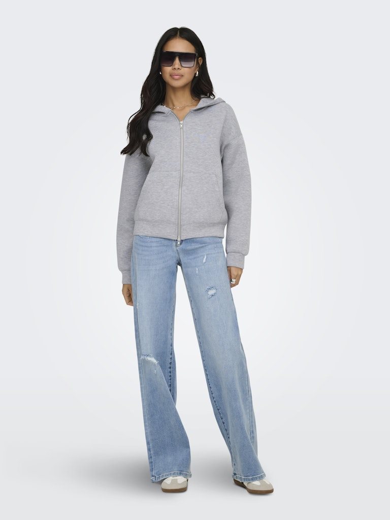 ONLY NAOMI TWO-WAY ZIP HOODIE LIGHT GREY MELANGE- 15383142