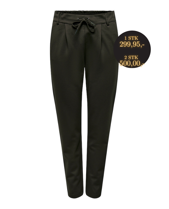ONLY’s populære Poptrash bukser – en bestseller, og det forstår vi godt! Bukserne er lavet i et blødt og lækkert materiale med masser af stræk, der sikrer en perfekt pasform og komfort. De er ideelle både som afslappende hverdagsbukser og kan nemt styles op til pænt brug med en fin skjorte.