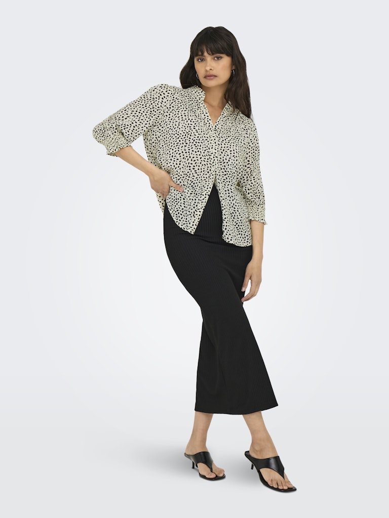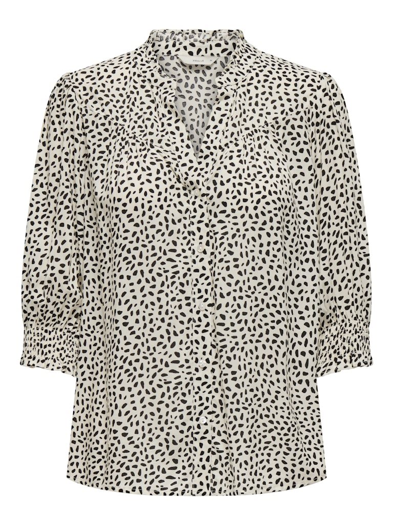 ONLY RAYA CLOUD DANCER BLACK GRAPHIC DOT 3/4 SHIRT WVN - 15332997