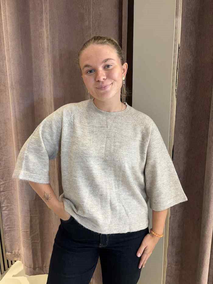 ✔ Kortærmet strik med 3/4 ærmer