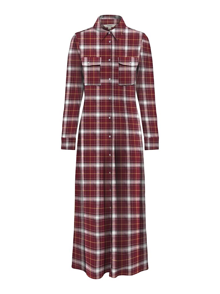 ONLY WREN CHECK L/S LONG SHIRT DRESS WVN SYRAH - 15368633
