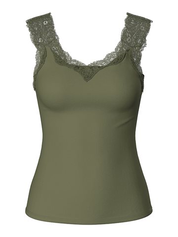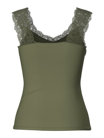 En smuk og alsidig top med fine blondedetaljer ved stropperne og halsen. Toppen er lavet i en lækker kvalitet, der føles skøn mod huden. Perfekt som en elegant undertrøje eller som en feminin top under en cardigan eller blazer.
