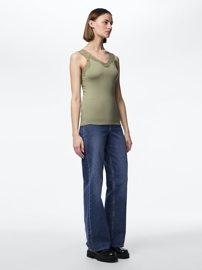 PIECES BARBERA LACE TOP DEEP LICHEN GREEN - 17106017