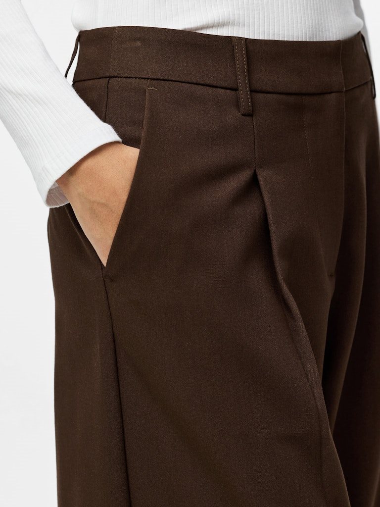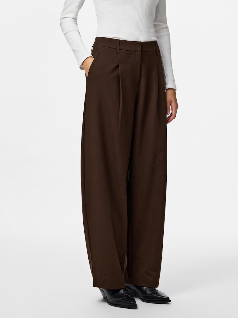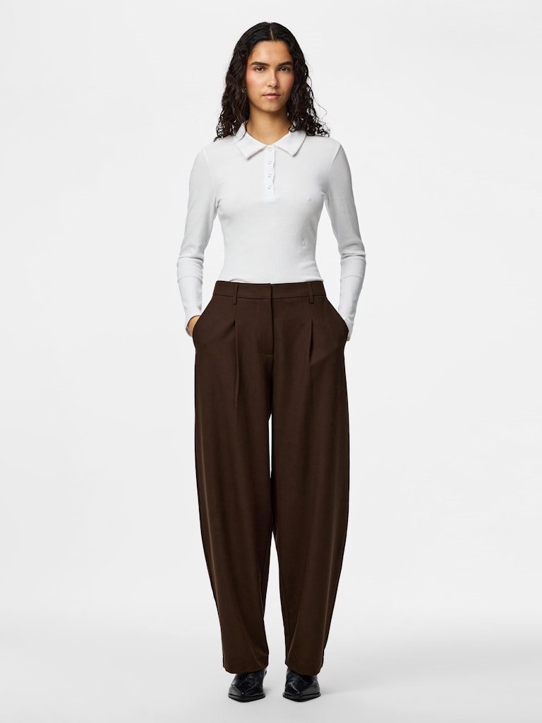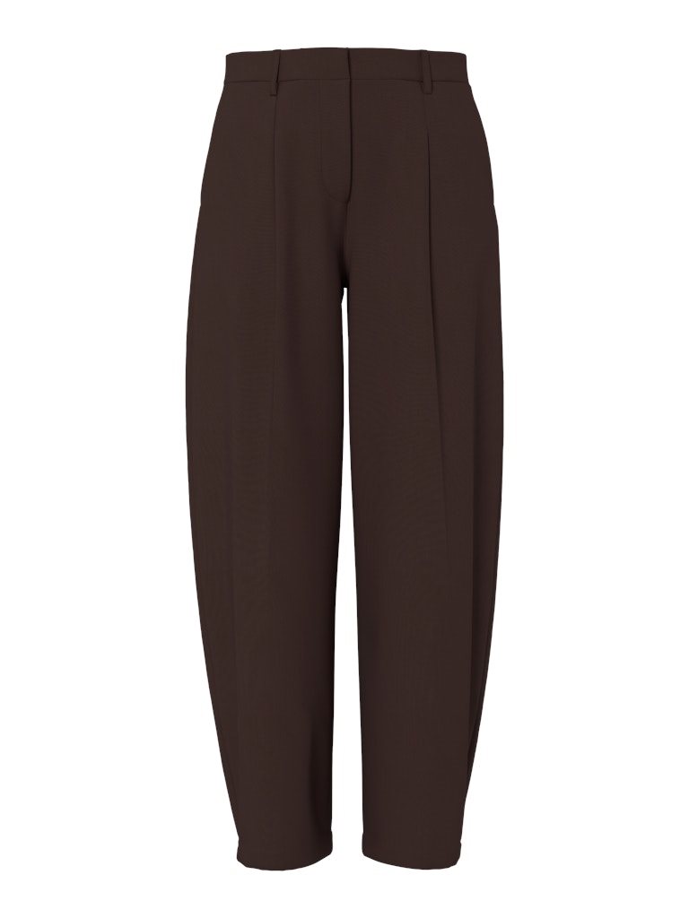 Disse moderne BOSELLA barrel pants fra Pieces kombinerer komfort og stil i et elegant design. Bukserne har en mellemhøj talje (MW – mid waist) og en trendy barrel pasform, som giver et afslappet, men sofistikeret look. Den varme Hot Fudge-brune farve gør dem nemme at style til både hverdag og mere elegante outfits.