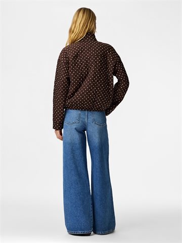 Quiltet bomberjakke fra PIECES – mørkebrun med hvide prikker