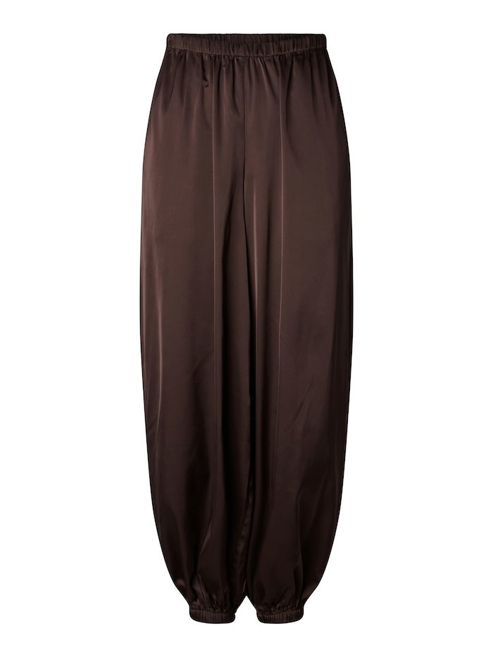 Bukserne er designet i en glat satin kvalitet, der giver et eksklusivt og skinnende look. Den karakteristiske ballon pasform skaber en moderne silhuet, mens elastik i både talje og ankler sikrer maksimal komfort og en fleksibel pasform.