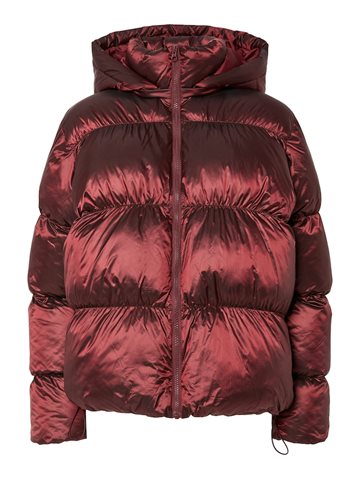 PIECES MILLA TAWNY PORT SHINY PUFFER JACKET W. HOOD - 17161846