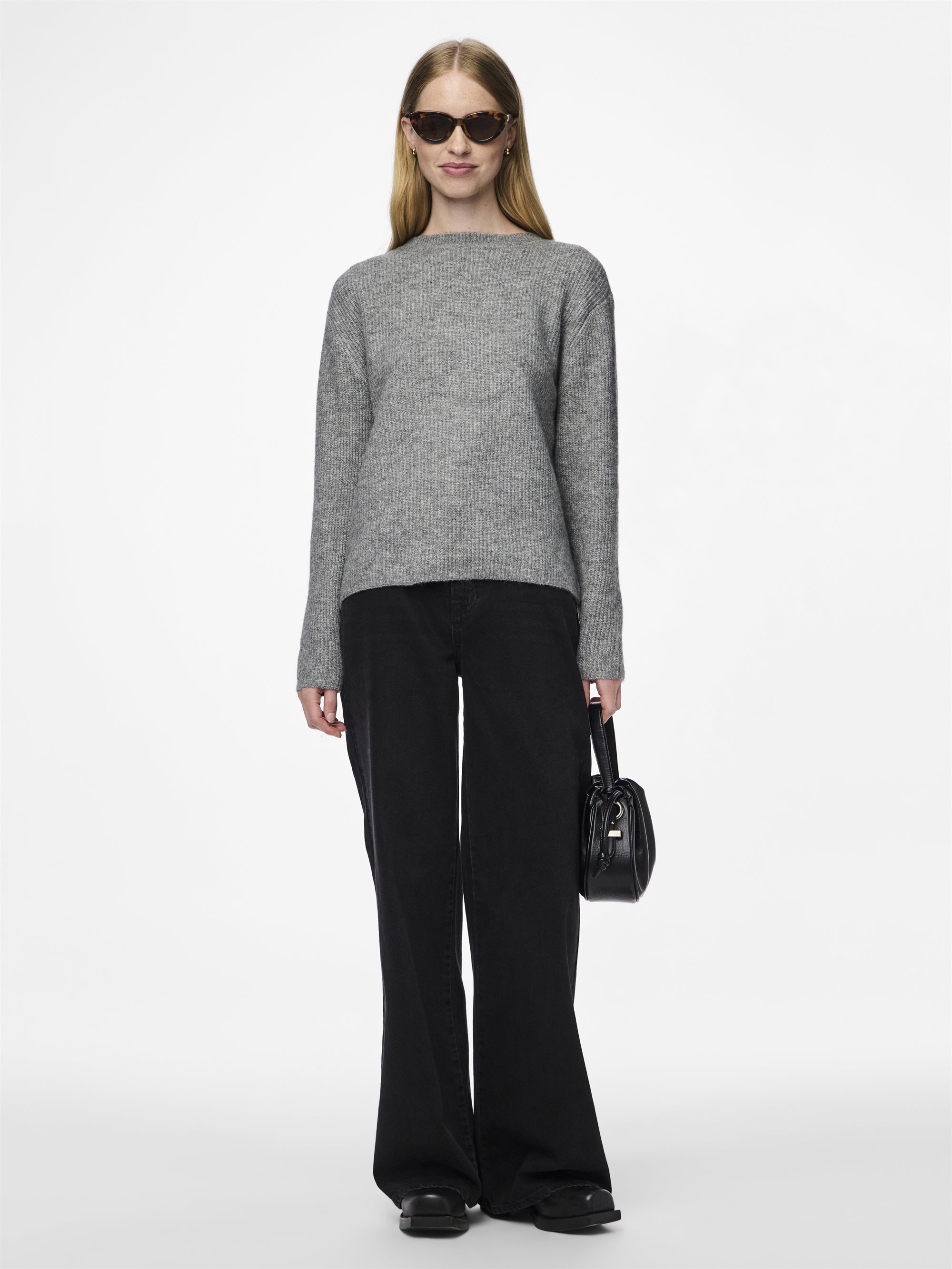 PIECES SILLY MEDIUM GREY MELANGE REVERSIBLE TIE KNIT BLUSE - 17150235