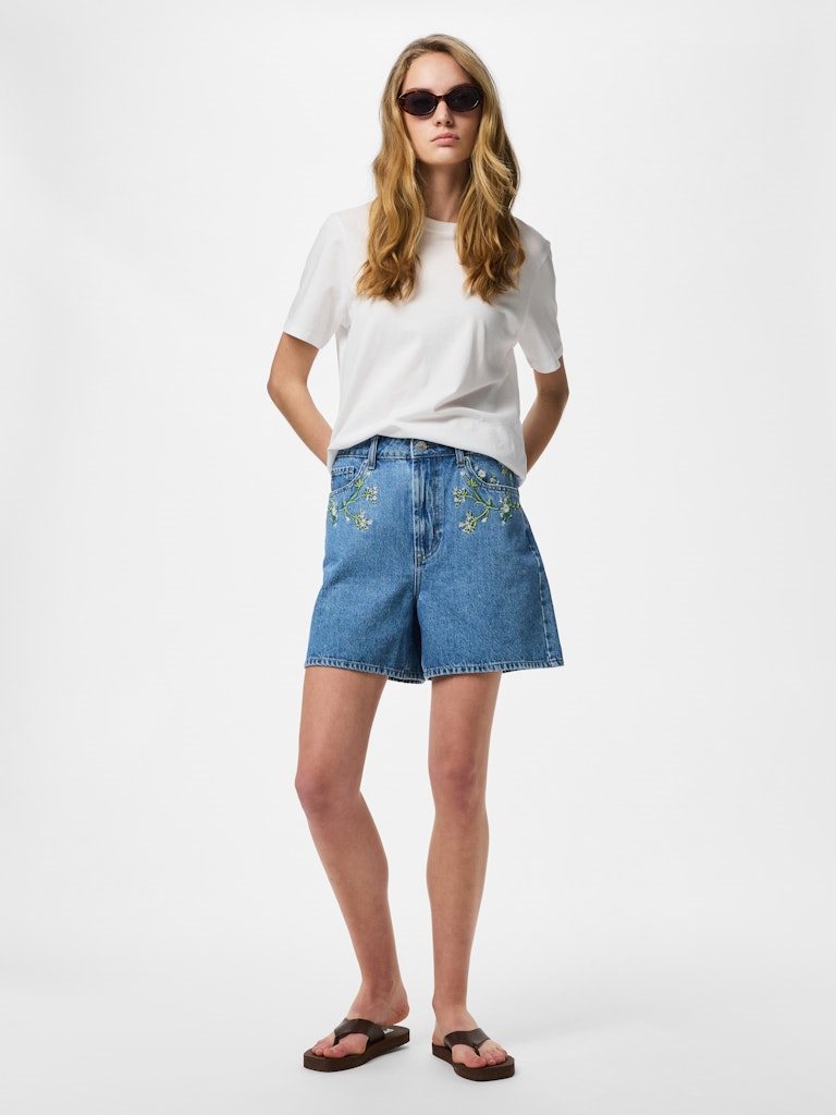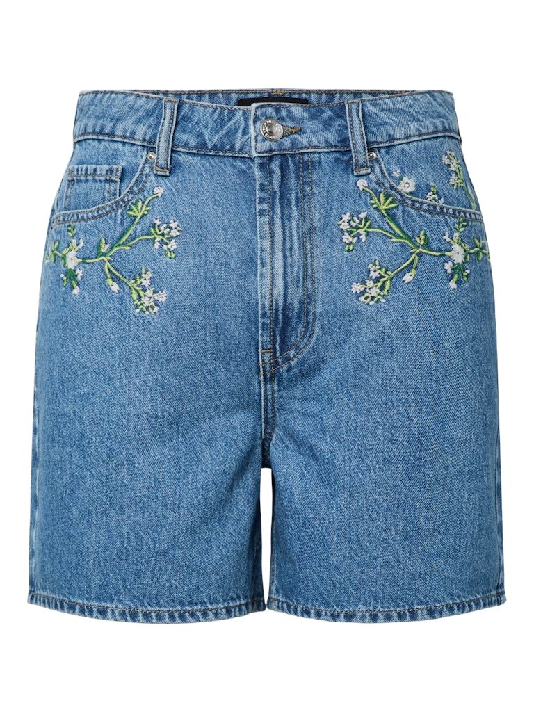 PIECES SKY HW EMBROIDERY DENIM SHORTS MEDIUM BLUE DENIM - 17148991