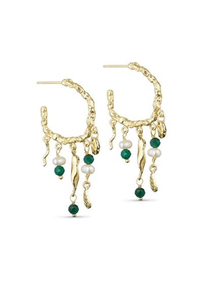 Smukke øreringe fra Pure by Nat. Med de smukke grønne malachite og hvide perler får du et klassisk smukt design. Brug de smukke Andrea øreringe alene eller bland dem med forskellige størrelse øreringe.