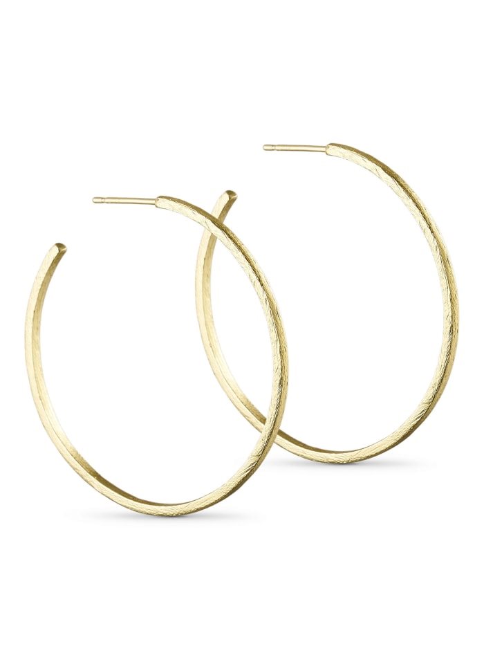 Enkle og elegante guld hoops fra Pure By Nat. Disse fine øreringe har et minimalistisk og stilrent udtryk, der gør dem perfekte til både hverdag og fest. Det tynde design giver et let og luftigt look, som passer til enhver stil.  Øreringene måler 38 mm.