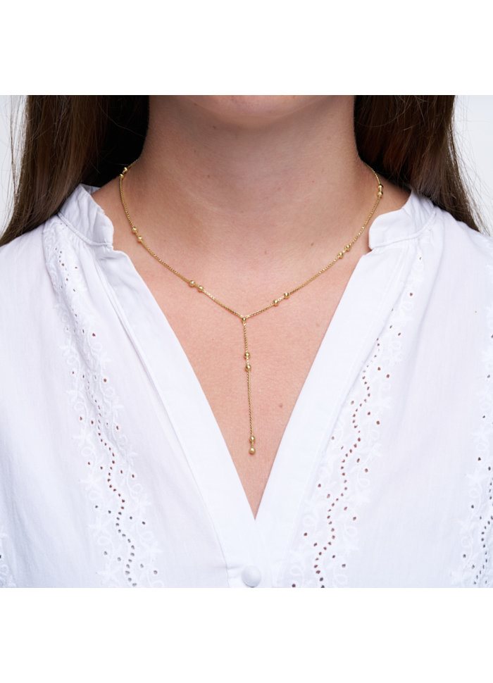 Enkel og elegant Y-halskæde i guldbelagt finish. CAMILLE Y-Necklace G/B er designet med fine kugledetaljer langs kæden, der giver et let og feminint udtryk med diskret glans.