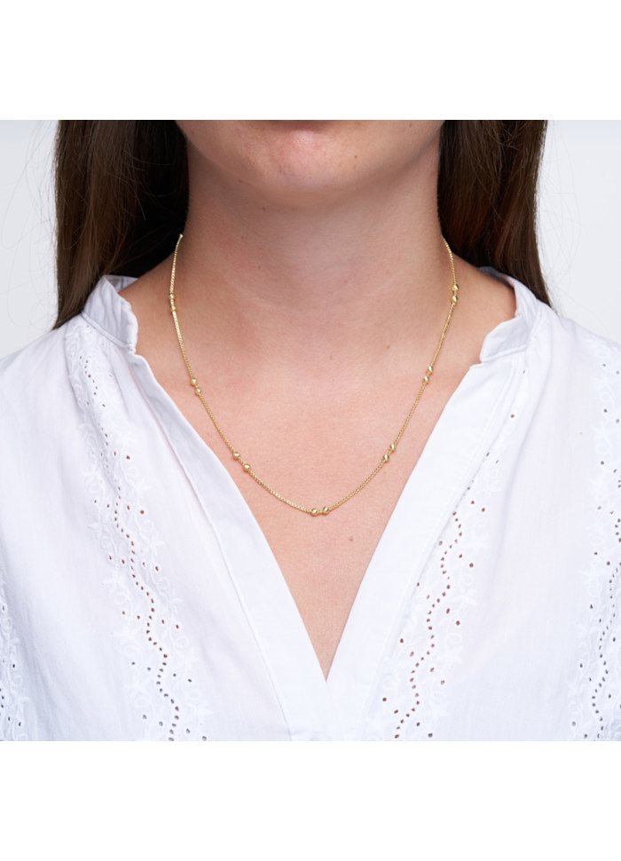 Enkel og tidløs guldbelagt halskæde med fine kugledetaljer. CAMILLE Necklace G/B har et minimalistisk design, hvor små kugler er jævnt fordelt på kæden og tilfører et diskret, feminint udtryk.