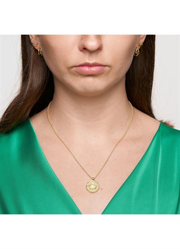 Elegant guldbelagt halskæde med rundt eye-vedhæng og funklende zirkon. EVELYN Necklace kombinerer symbolik og stil i ét raffineret design, hvor det klassiske øje-motiv tilfører et moderne og eksklusivt udtryk.