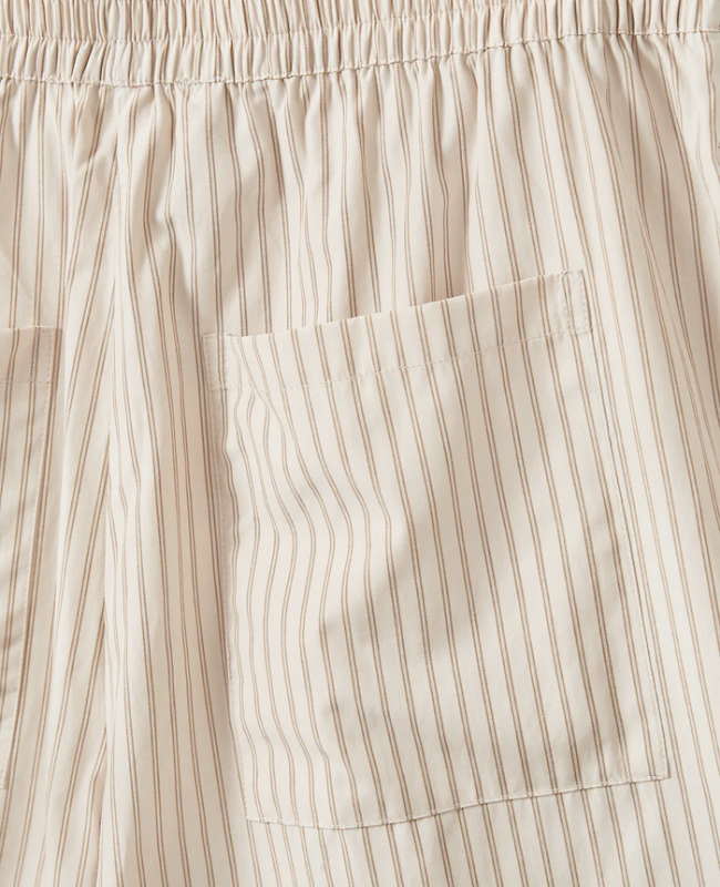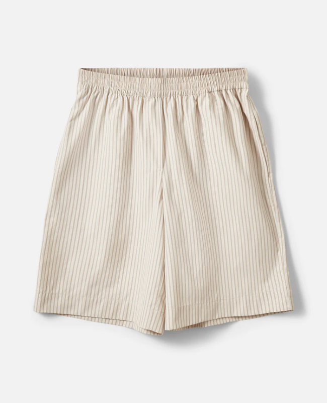 Det tidløse off white og sorte stribede mønster gør dem nemme at style med både skjorter, toppe og T-shirts – ideelle til både hverdag, ferie og sommerbrug.