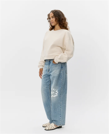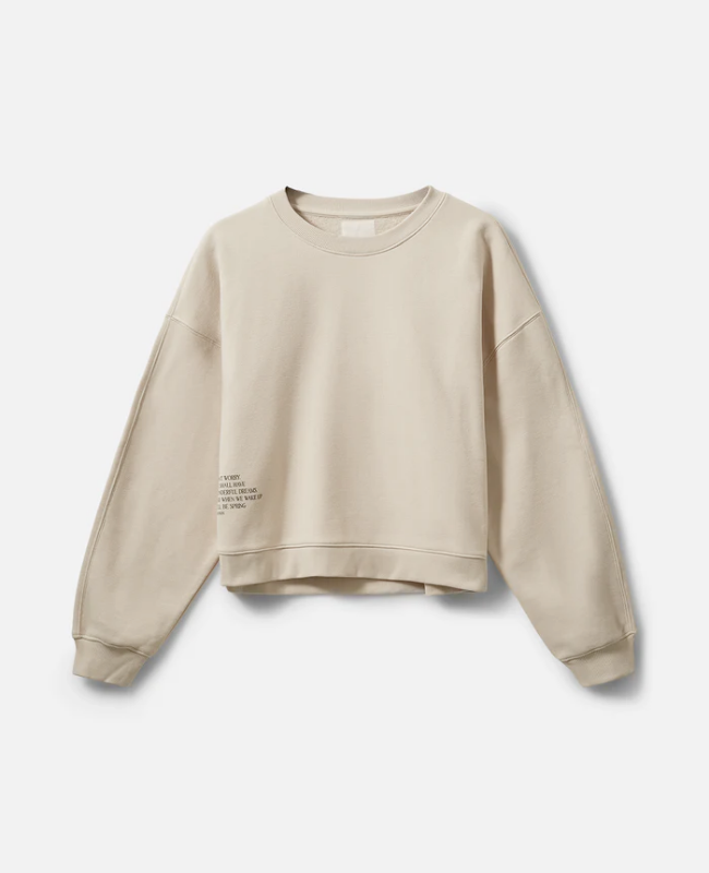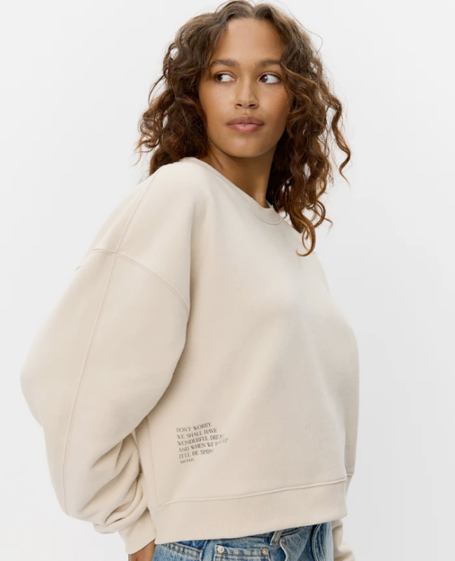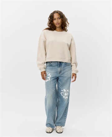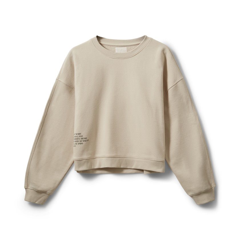 Sweatshirten er lavet i en blød og lækker sweatkvalitet, som føles behagelig mod huden og samtidig holder faconen. Den neutrale beige farve gør den nem at style – brug den til jeans, leggings eller over en kjole for et afslappet og moderne look.