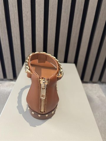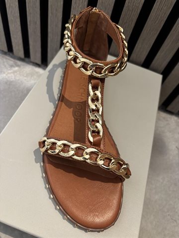 Stilfuld og komfortabel sandal i en smuk cognacfarve. De rå guldfarvede spænder tilføjer et cool touch, mens den bløde sål sikrer maksimal komfort hele dagen. Perfekt til både hverdag og sommerens mange anledninger.