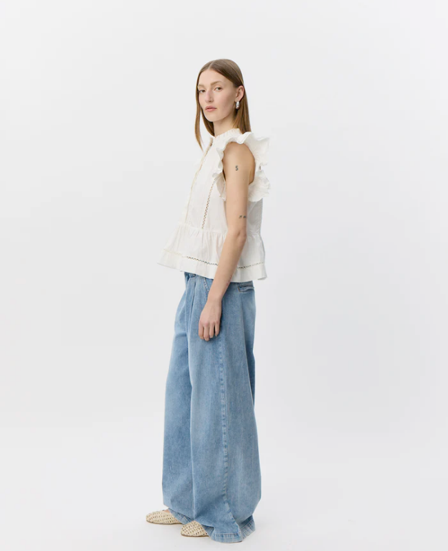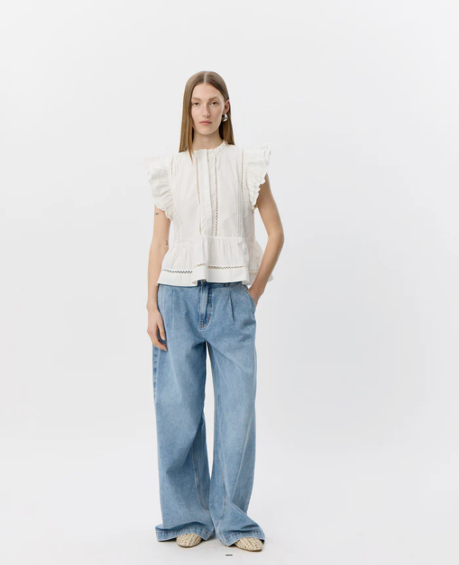SOFIE SCHNOOR JULIENSW FRILL COTTON TOP WHITE ELYSSUM - S262145