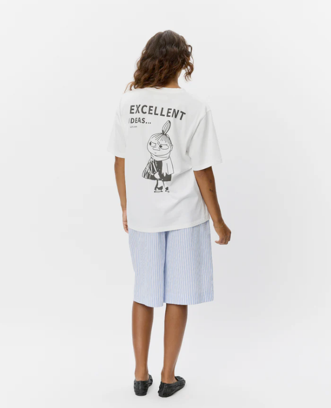 En skøn klassiker med et legende twist. Denne hvide T-shirt fra Sofie Schnoor er en del af det eksklusive Moomin-samarbejde og kombinerer enkelt, skandinavisk design med et ikonisk rygprint af Lille My.