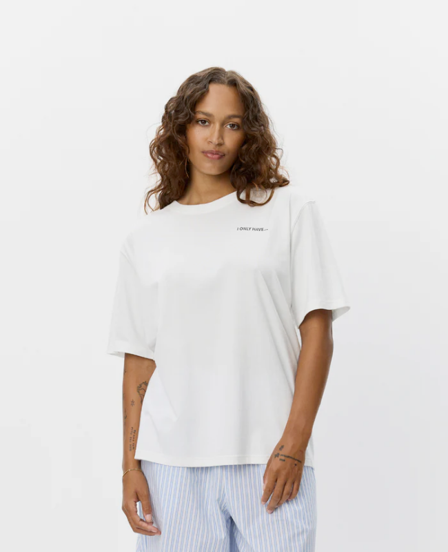 Den rene hvide farve giver et tidløst og stilrent udtryk, mens printet af Lille My på ryggen tilfører personlighed og charme. Resultatet er en T-shirt, der er nem at style, men samtidig skiller sig ud med sin fine detalje.